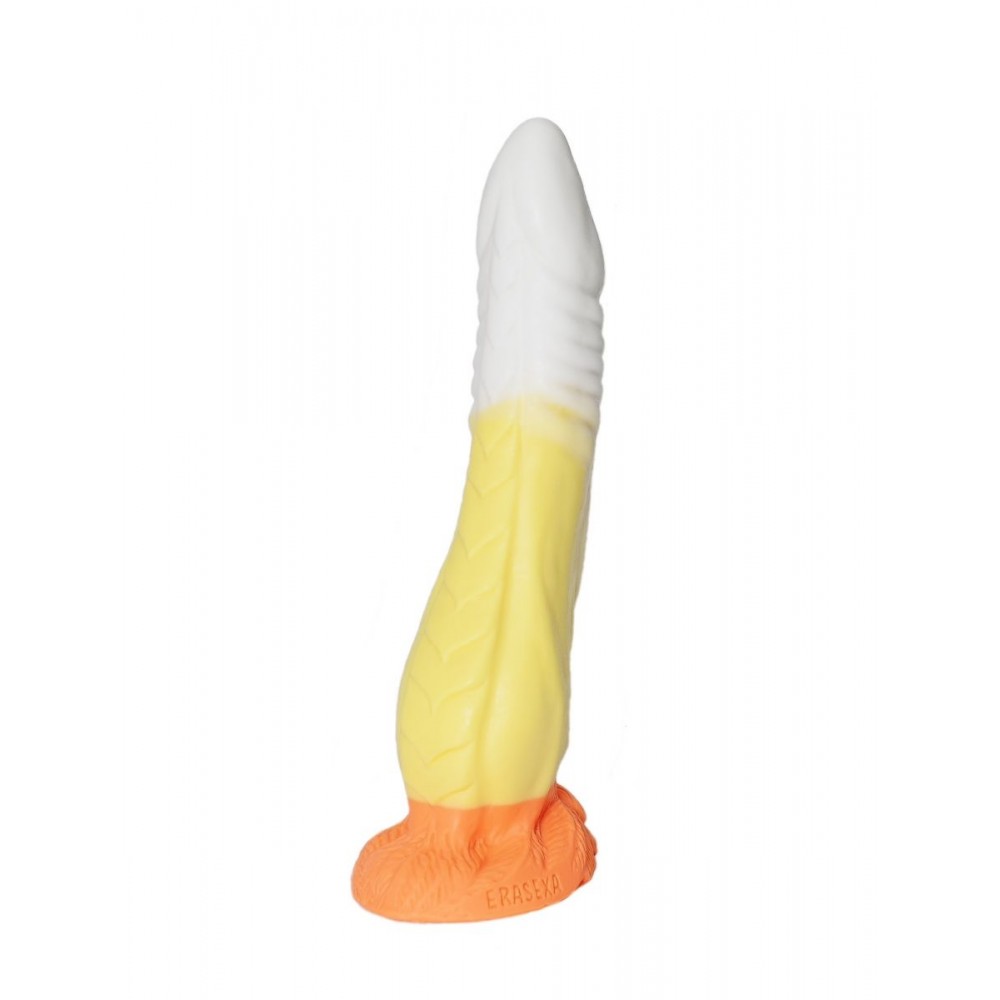 С этой по-настоящему красивой секс-игрушкой от Erasexa – первого и пока единственного российского производителя товаров интимного назначения для поклонников зооэротики – вы почувствуете, что умираете от наслаждения. Действительно большая как в длину, так и в диаметре, очень приятная на ощупь, податливая, с неповторимым рельефом… ох! «Феникс» выполнен вручную из нежнейшего силикона, имеет устойчивое ограничительное основание с узором в виде пёрышек и ствол, покрытый рёбрами и выступами. Впуская в себя эту бело-жёлтую птичку на всю глубину, вы раз за разом будете взлетать к вершинам блаженства!