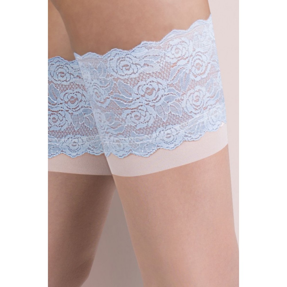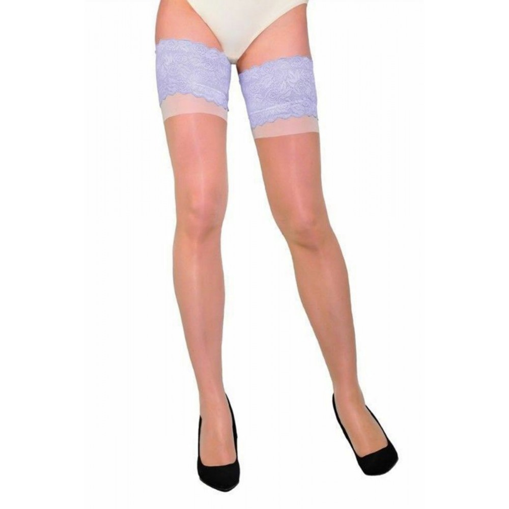 Чулки Katherine с ажурной резинкой на силиконе и контрастной полосой под ней.