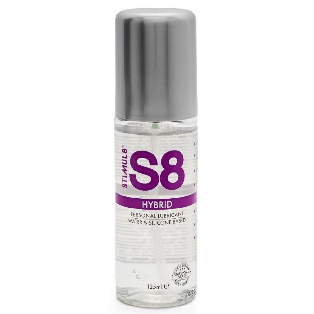Лубрикант Hybrid S8 - это смазка премиум-класса, которая идеально подходят для тех, кто не может определиться с выбором основы для смазки. Они сочетают в себе шелковистое скольжение силиконовых лубрикантов и легкое очищение от смазок на водной основе. Максимально натуральная, смазка Hybrid не содержит парабенов, фталатов, глютена, сульфатов, добавленных красителей и агрессивных консервантов. S8 также соответствует всем действующим нормативам ЕС в отношении продуктов для интимной гигиены.