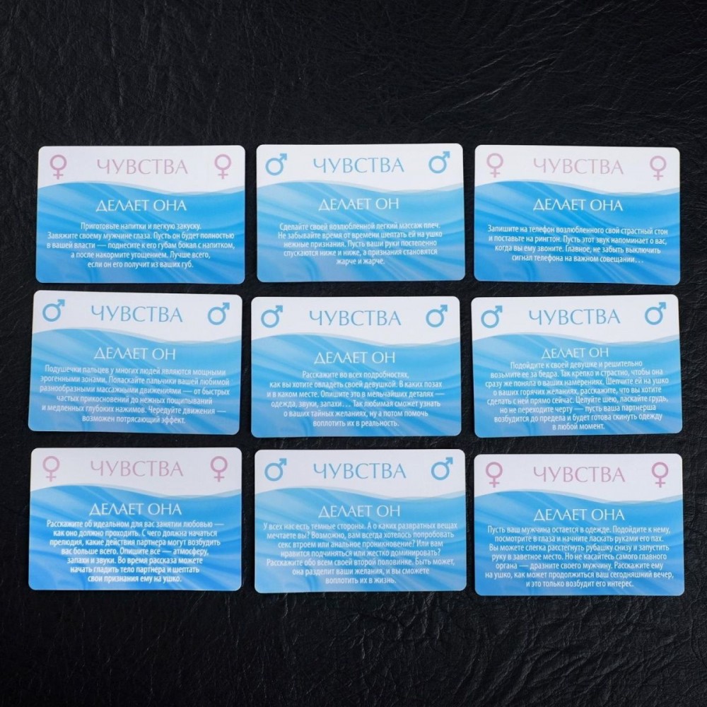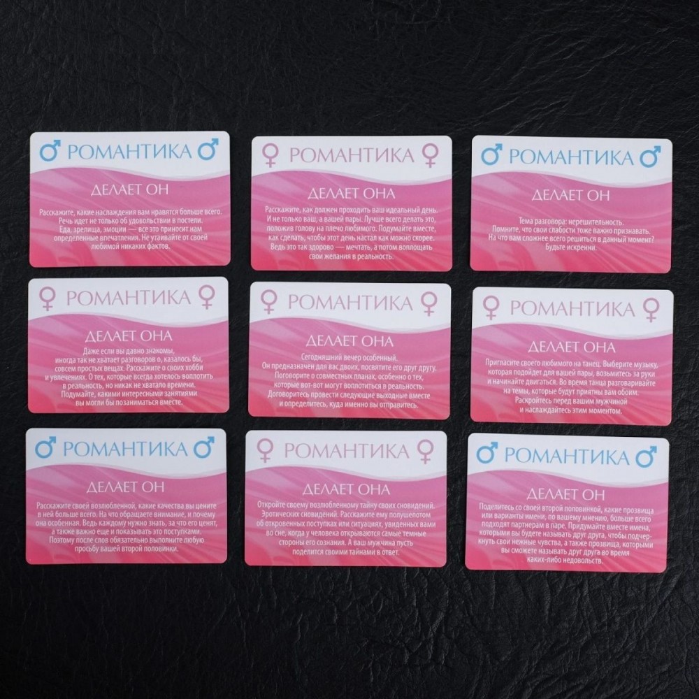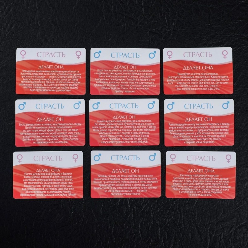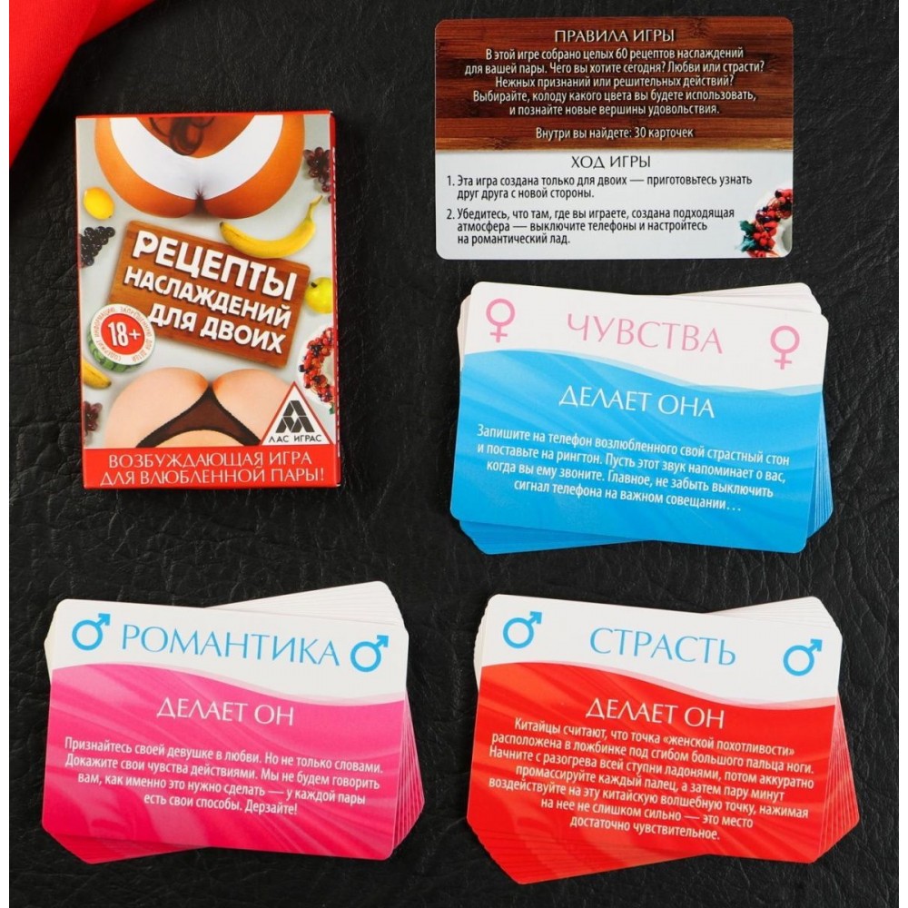 Возбуждающая игра для влюблённой пары. В этой игре собрано целых 60 рецептов наслаждения для вашей пары. Чего вы хотите сегодня? Нежности или страсти? Романтических признаний или решительных действий? Выбирайте, колоду какого цвета вы будете использовать, и познайте новые вершины удовольствия. Соблазн и страсть — вот что вас ждёт! В игре всего 3 колоды. Чем ярче колода, тем откровеннее в ней задания. Если ваша пара ещё только начала узнавать друг друга, то воспользуйтесь самой светлой колодой. Если у вас уже была близость, подключите следующие колоды, постепенно делая задания всё горячее. На одной стороне карточки указаны действия для девушки, а на другой — для мужчины. Ознакомьтесь с информацией на обеих сторонах выбранной карты и дерзайте. Внутри вы найдёте 30 карточек и правила игры. Приготовьтесь узнать друг друга с новой стороны! В комплекте: 30 карточек, правила игры.