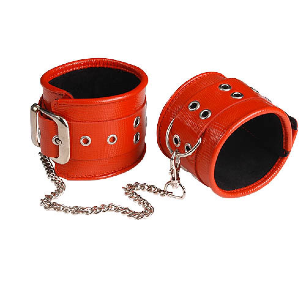 Изготавливаются из натуральной кожи с велюровой подкладой. При изготовлении использована фурнитура с никелевым покрытием. Между слоем основы и подкладой проложена мягкая прокладка. Соединяются между собой цепочкой с двумя карабинами на концах. Не нарушают кровообращение, надёжно фиксируются щиколотках. Размер универсальный. Длина цепочки - 35 см.