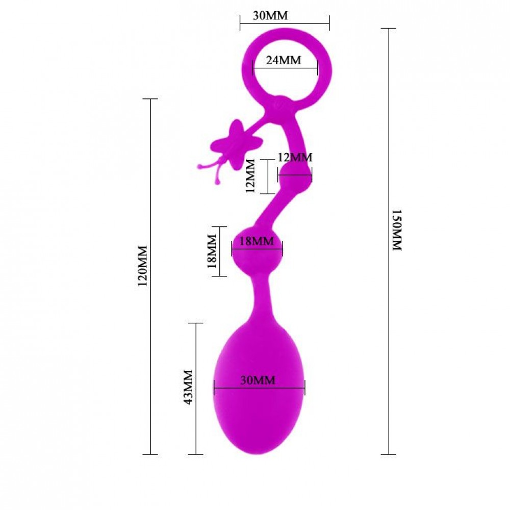 Анальная цепочка , состоящая из яйца и 2 звеньев. Бусины имеют разный диаметр. Удобное кольцо позволяет использовать изделие максимально комфортно и безопасно. Кольцо украшено бабочкой. Материал изготовления - силикон. Игрушка гибкая, не пористая. Рабочая длина - 12 см.