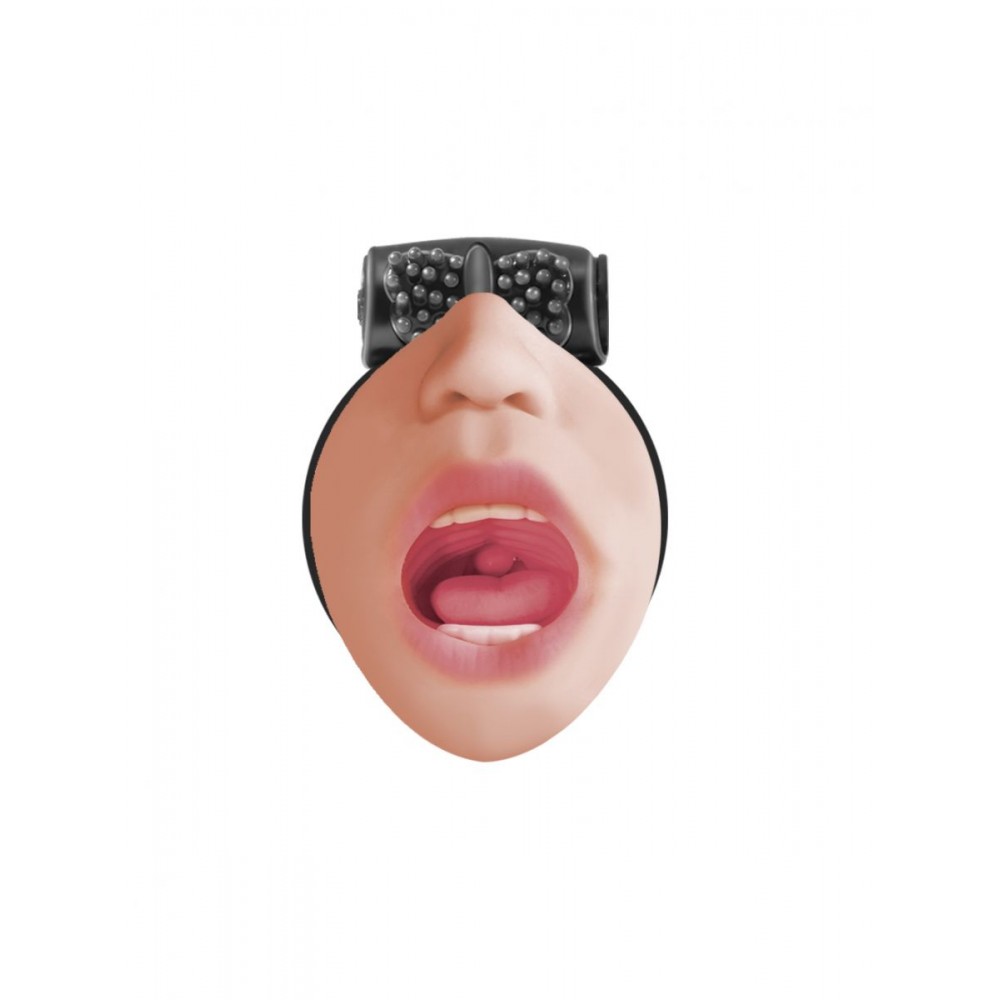 Мастурбатор эластичной текстуры, способен возбудить и довести до оргазма любого мужчину. Он выполнен в виде женского ротика (раскрашенного вручную) с белоснежными зубками, подвижным язычком и гландами. Создан данный интимный аксессуар из максимально реалистичного материала. Безопасный для кожи, не содержит фталатов. Подойдет для любого размера. Внутренний рельеф, для воплощения которого применяется двойная заливка материала. Инновационная технология Узкий Вход - для максимально плотного обхвата (имитация орального секса). В комплекте черное виброкольцо с мягкими шипиками для большей стимуляции. Имеет один режим вибрации.