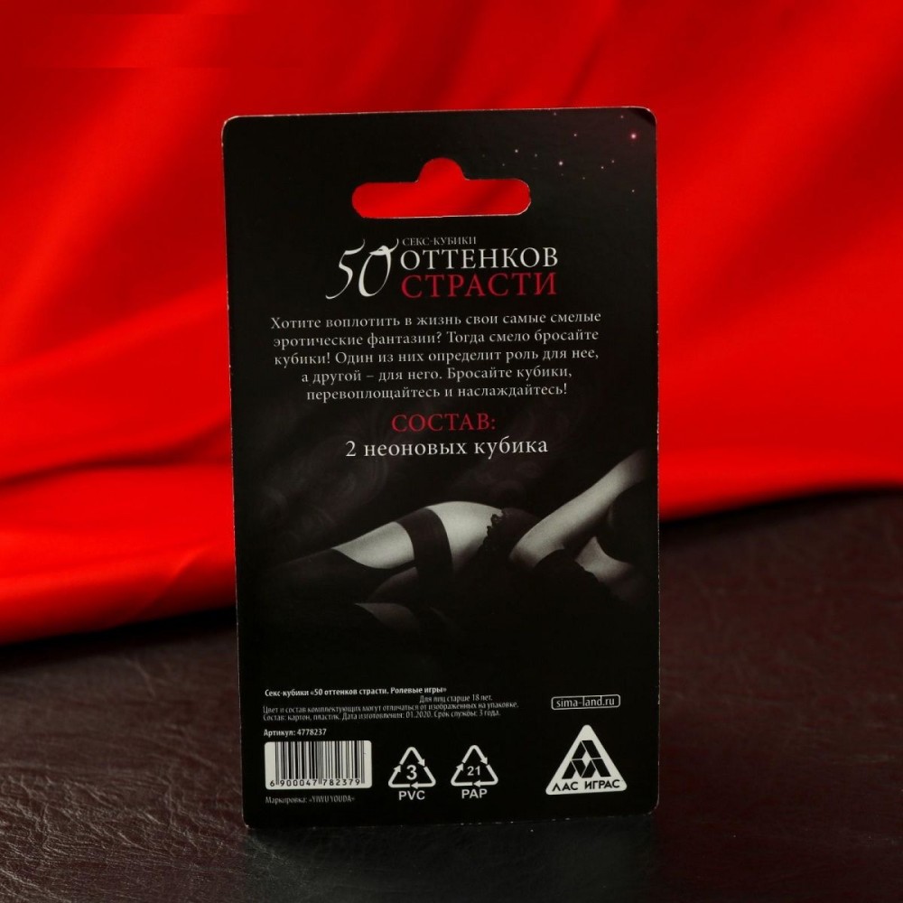 Хотите воплотить в жизнь самые смелые эротические фантазии? Тогда просто бросьте кубики! Они позволят поэкспериментировать с ролевыми играми. Один из кубиков определит роль для неё, а другой — для него. Бросайте кубики, перевоплощайтесь и наслаждайтесь друг другом! Внутри вы найдёте 2 неоновых кубика.