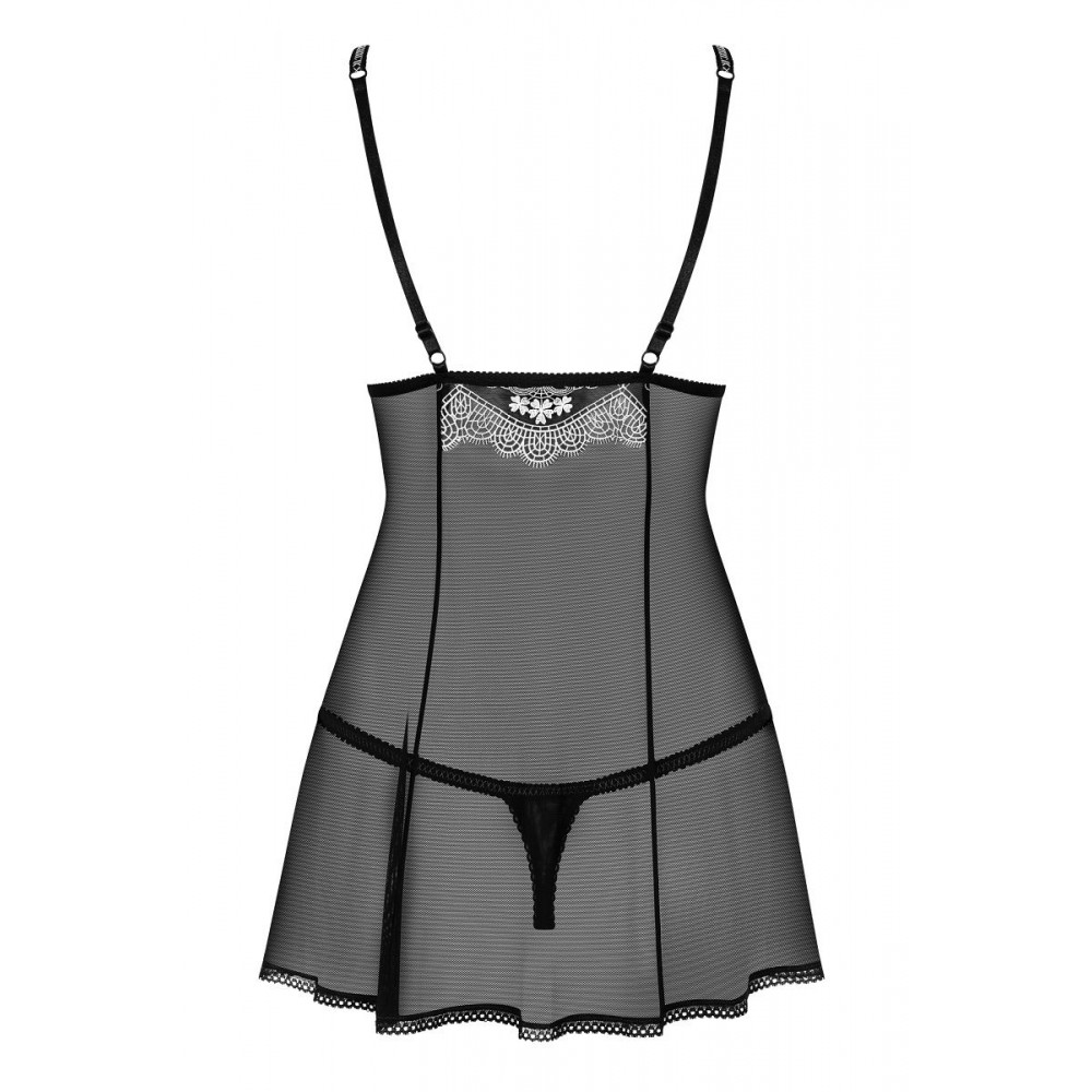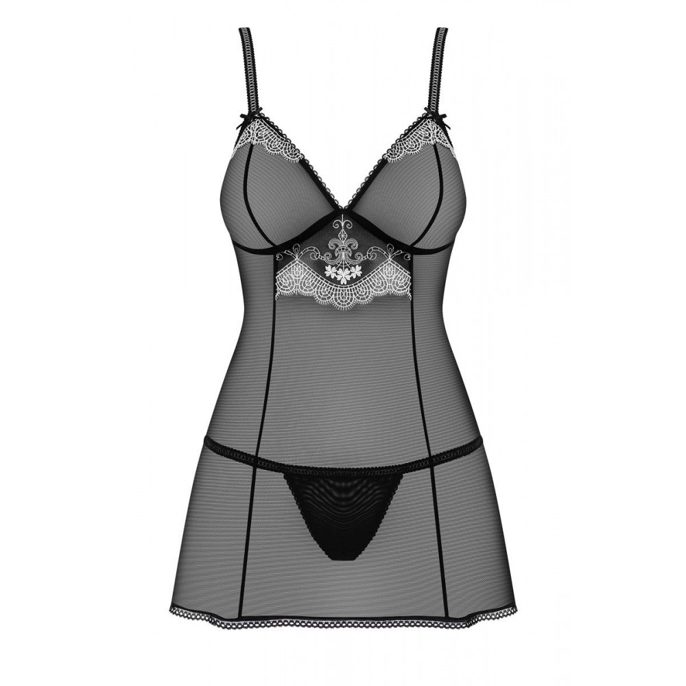 Полупрозрачная сорочка бэби-долл с изысканной кружевной отделкой. В комплекте: сорочка, трусики-стринги.