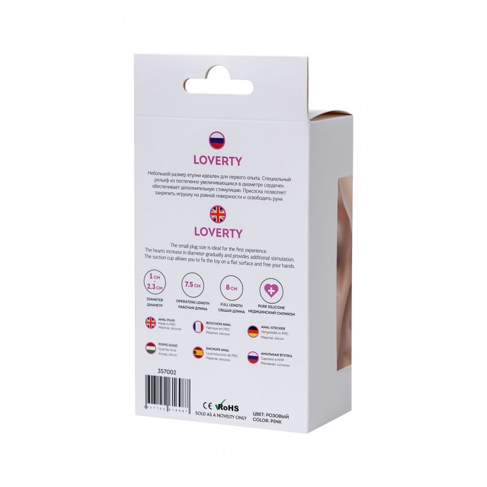 Небольшой размер пробки идеален для первого опыта. Специальный рельеф из постепенно увеличивающихся в диаметре сердечек обеспечивает дополнительную стимуляцию. Присоска позволяет закрепить игрушку на ровной поверхности и освободить руки. Рабочая длина - 75 см. Минимальный диаметр - 1 см.